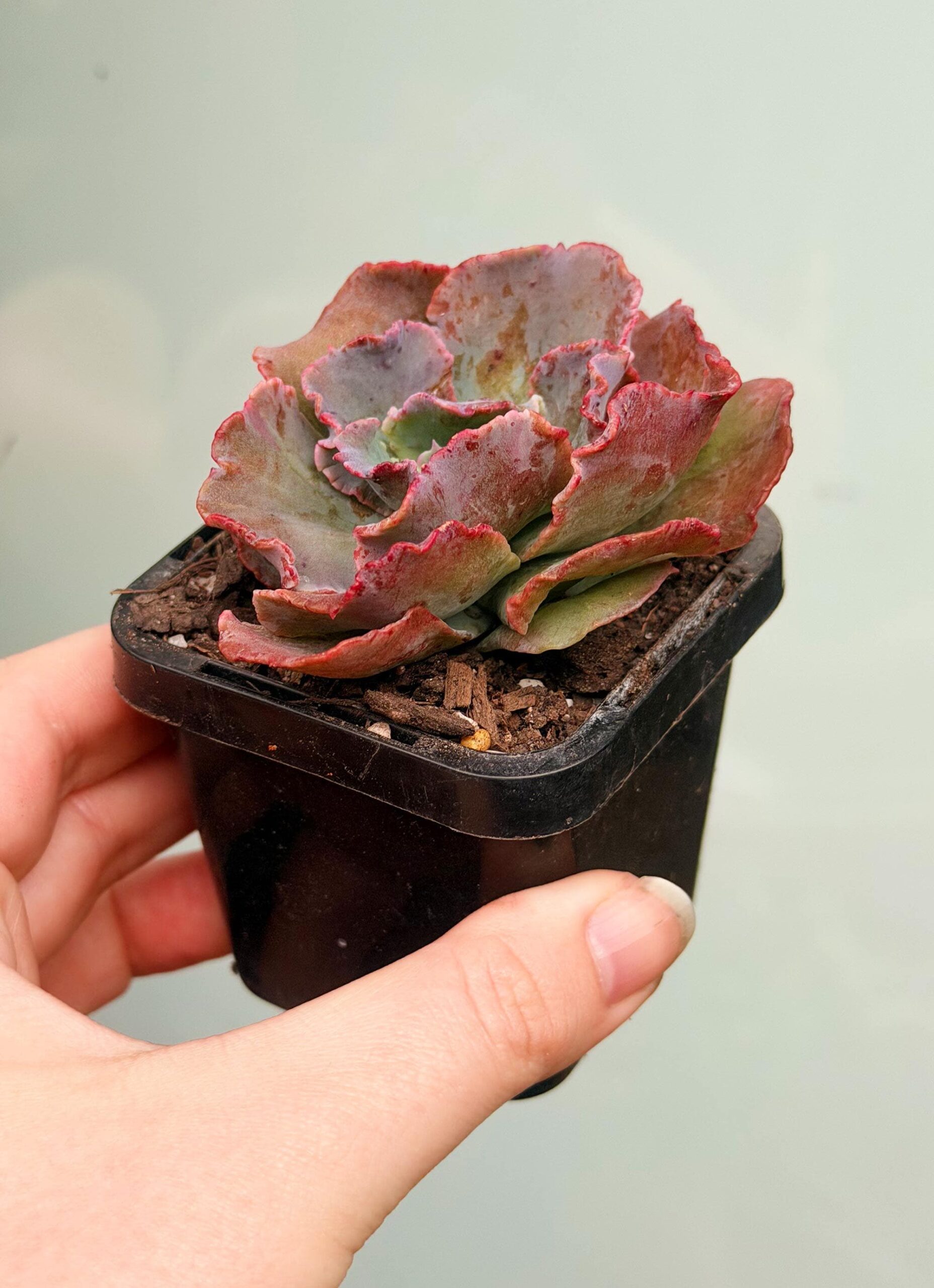 Echeveria ‘Blue Curls’ succulent plant from my garden in Melbourne, Australia. You will receive a plant similar to pictures #1-3. The plant has roots and will be sent in the 7cm pot shown.